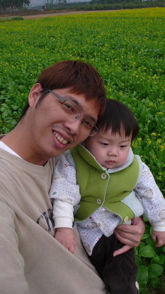 小金剛 回彰化 只會想往外跑但是外面都是田呀你能去哪呢只好推著他去看滿滿的油菜花田本來想讓他下去走的但是他一下去就是亂跑 而且還狂跌倒只好抱起來呀